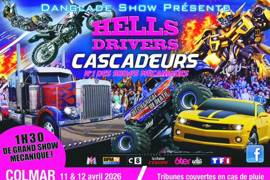 Du 23 au 30 mars, tentez de gagner 2 places pour le show des Cascadeurs hells drivers danglade show qui se produira le samedi 11 et dimanche 12 avril à 14h30 au Parc expo de Colmar, pour la date de votre choix ! Préparez-vous à 1h30 de cascades incroyables, de figures extrêmes et d’adrénaline pure ! Un spectacle unique en France mêlant voitures, motos, Monster trucks et personnages légendaires