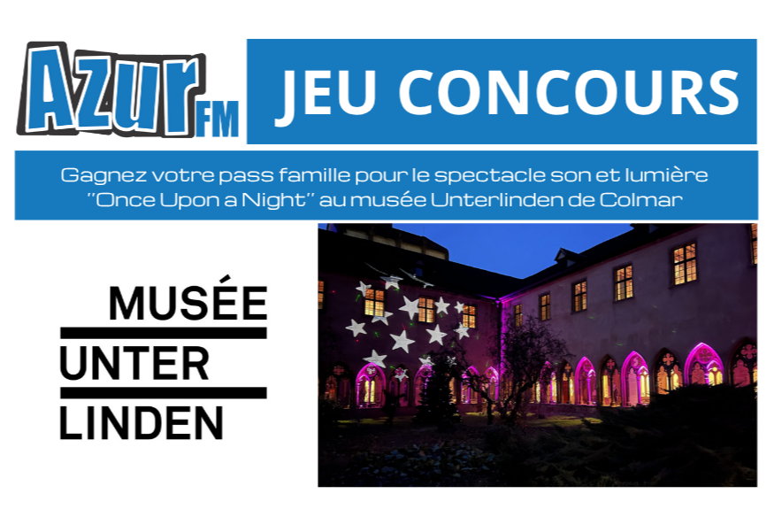 Du 17 au 23 novembre, tentez de gagner votre pass famille (4 entrées adultes) pour découvrir le spectacle son et lumière « Once Upon a Night » dans le cloître du Musée Unterlinden à Colmar. Un spectacle proposé du 26 novembre au 4 janvier, entre 16h45 et 17h45 et qui marquera les 10 ans d’ouverture du musée agrandi ! L’occasion de découvrir ou redécouvrir de manière originale et moderne le musée, son histoire et ses collections. Durée du spectacle : 10 minutes