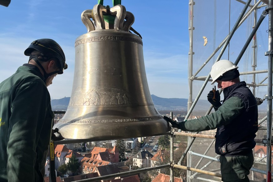 Les cloches font leur retour dans l’église Saint-Georges de Sélestat ! Plus d’une centaine de personnes ont assisté ce mercredi 28 février à l’installation de deux nouvelles cloches dans le beffroi de l’édifice.