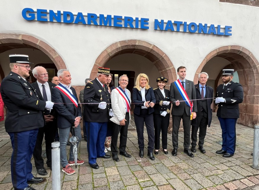 ans. Après l’engagement du Président de la République Emmanuel Macron quant à la création de plus de 200 nouvelles brigades de gendarmerie sur l’ensemble du territoire national, annoncé lors de son déplacement à Châtenois le 11 avril 2022, voilà chose faite dans la commune du Centre-Alsace. Déjà installée depuis le 01 février dernier dans des locaux provisoires, au sein d’un bâtiment à proximité de la mairie, la nouvelle brigade de gendarmerie de proximité de Châtenois a été inaugurée ce jeudi 23 mai, en présence de Dominique Faure, ministre déléguée chargée des Collectivités territoriales et de la Ruralité. Tel que pour les Maisons France Service, l’idée est de marquer le retour du service public au plus près de la population.