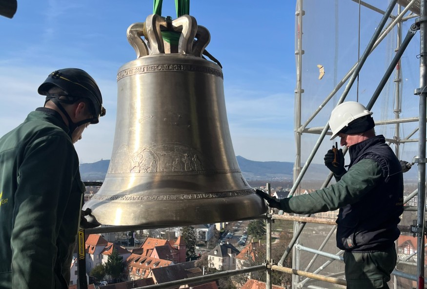 Les cloches font leur retour dans l’église Saint-Georges de Sélestat ! Plus d’une centaine de personnes ont assisté ce mercredi 28 février à l’installation de deux nouvelles cloches dans le beffroi de l’édifice.